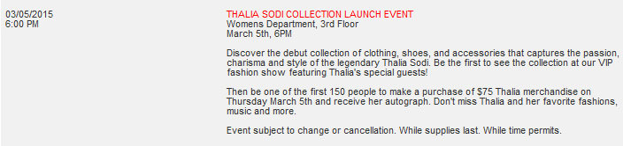 February 28, 2015. 11AM. Women's Department, Level 2 - THALIA SODI COLLECTION LAUNCH PARTY